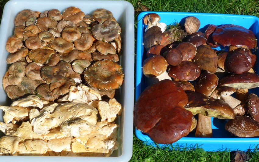 Hoy he salido a setas. Parece que ha llovido estos dias (el suelo estaba húmedo) y todo hacia presagiar una buena recolección. Tango la sensación que las setas aún no han hecho su eclosión. Comienzan aparecer. Cuando he llegado a casa y he ordenado las setas, veo que la cosecha no ha sido mala, pero tengo la sensación de haber tenido que andar bastante y buscar con cierto interés. Las setas que he recogido se ven en la foto de la izquierda. Hay nizcalos, lengua de vaca y boletus. Tengo que dar unas pocas a Loly y otras a Vidal que me ha arreglado la puerta peatonal. Voy a bajar a pagarle y entregarle unos nizcalos y lengua de vaca.